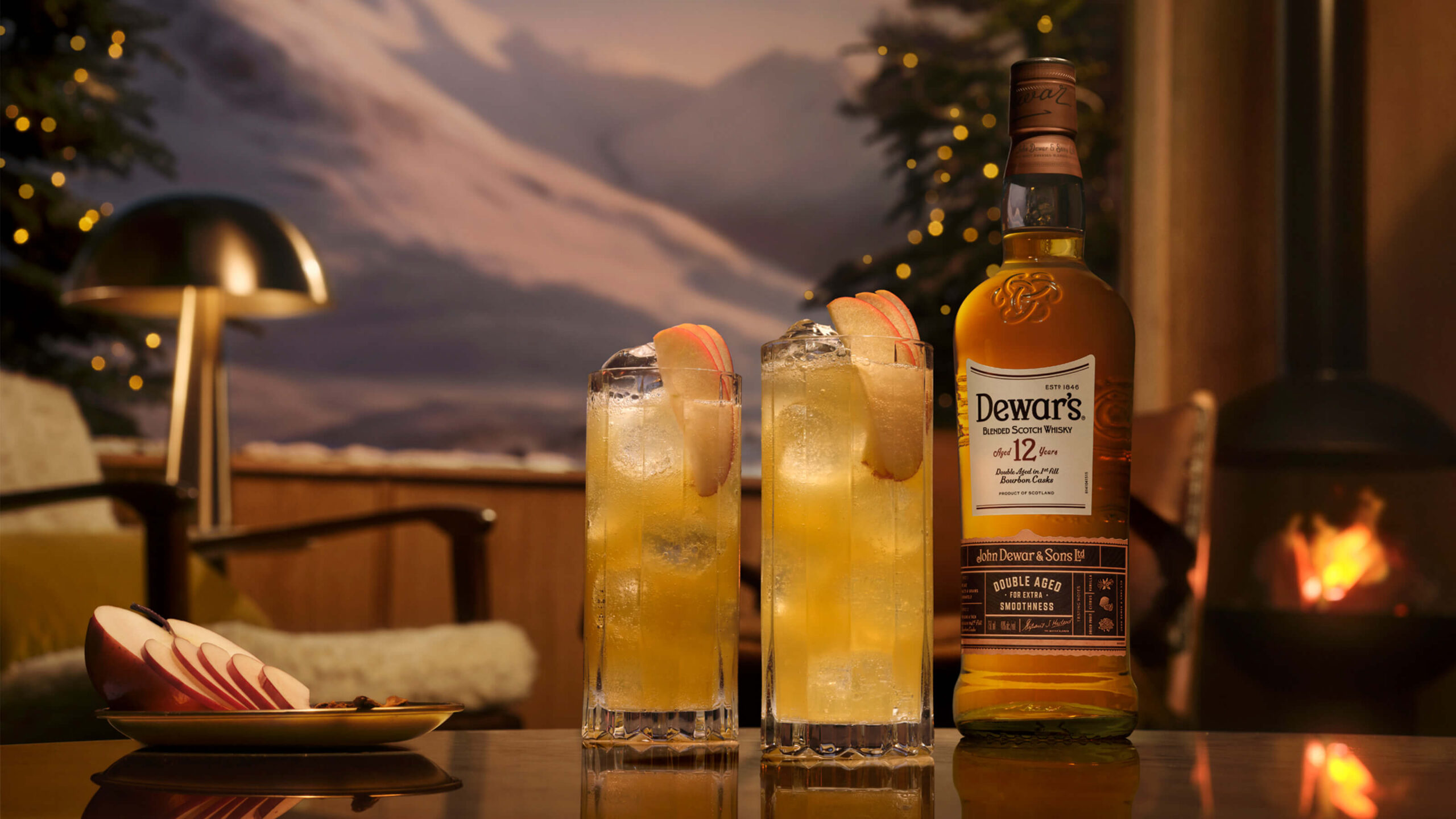 - Add DEWAR’S 12 Year Old whisky, fresh lemon juice, cloudy apple juice and cinnamon-honey syrup into a shaker.